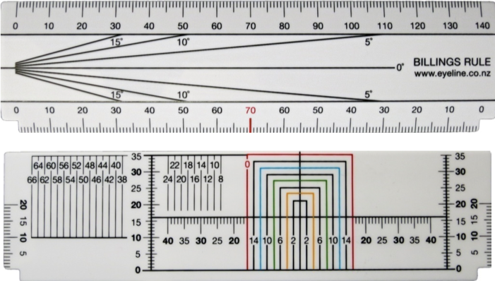 The Billings Optical Rule is a multi-task optical rule that has been jointly developed by John Billings FBDO, Eyeline Optical N.Z. Ltd and Aviva Mann Optical Group Australia. It allows for the accurate measurement of spectacle frames, PD’s, and other frame and fitting calculations required in today’s modern optical practice, laboratory and workshop environments.